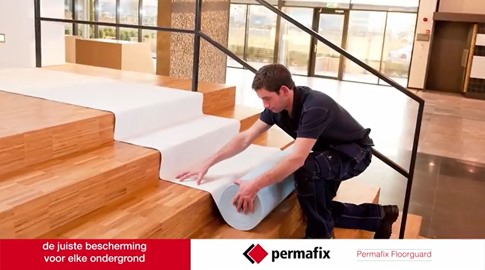 Zelfklevend afdekvlies met een hoge mechanische beschermingsfactor en een vloeistofdichte afveegbare toplaag. Geschikt voor het veilig en exact afdekken van vloeren en trappen.